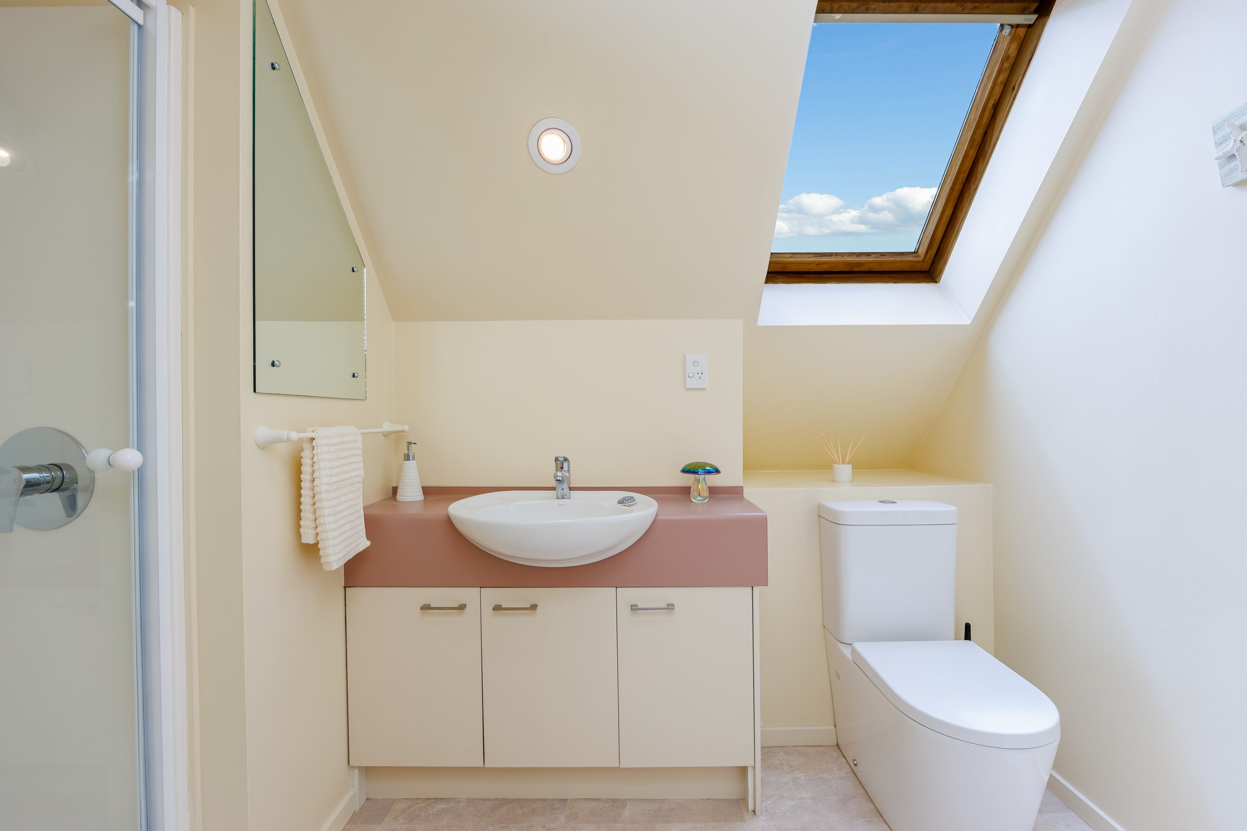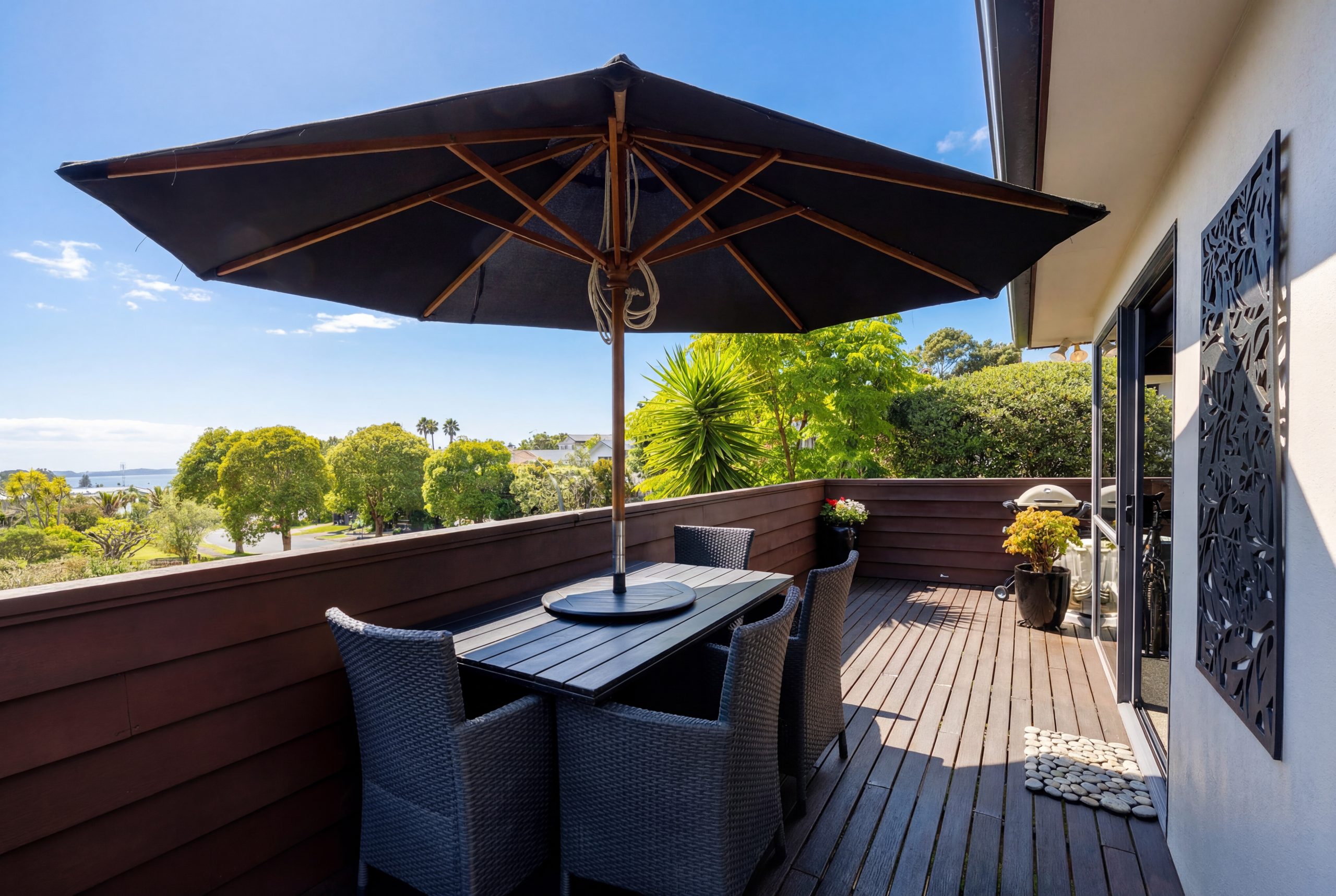 The main level features the Master bedroom and open living spaces that flow seamlessly to a sunny deck offering an elevated setting and glimpses of the sea. Designed with comfort in mind, the layout is ideal for discerning buyers seeking space and privacy.