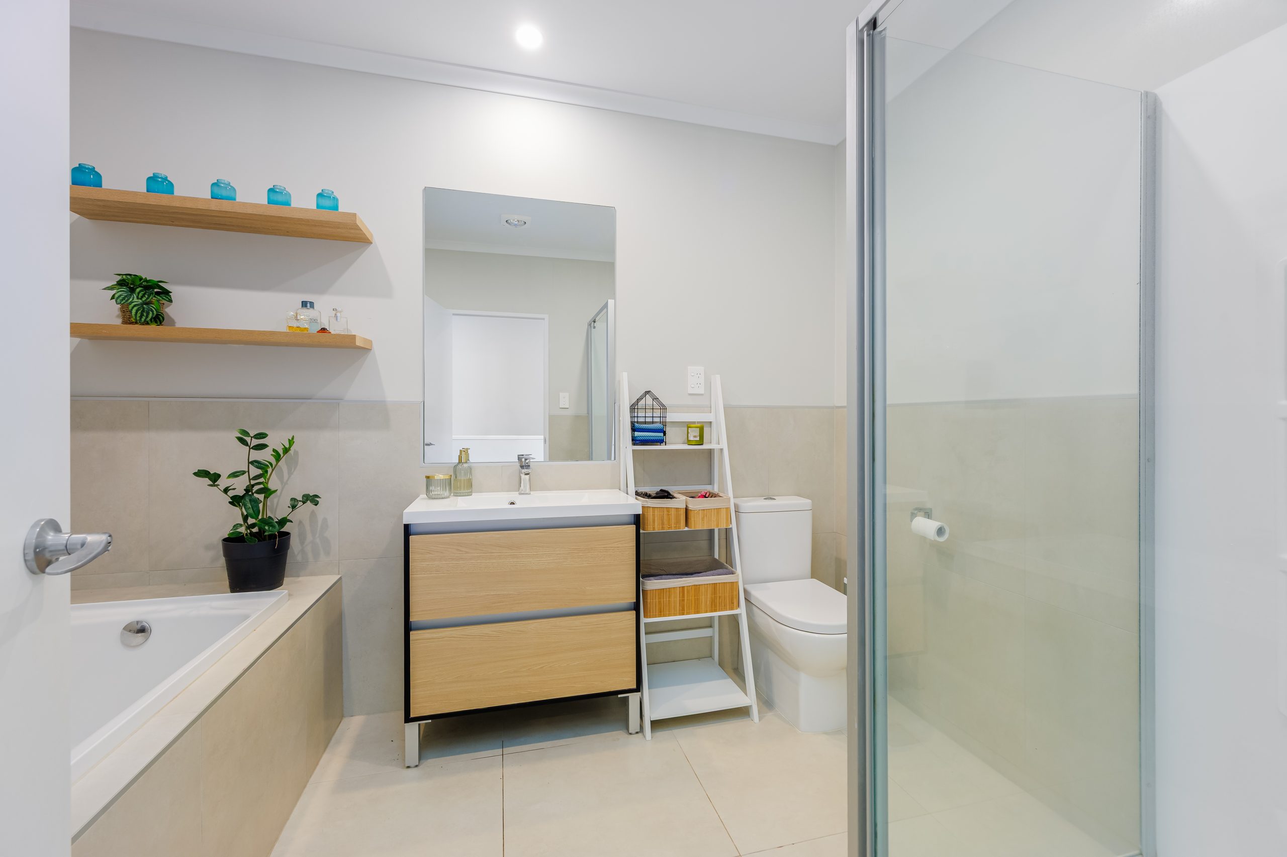 Both bedrooms are spacious and well-appointed, with lake views from the master. The large bathroom with bath and separate shower upstairs, and guest toilet and laundry downstairs, adds to the appeal.