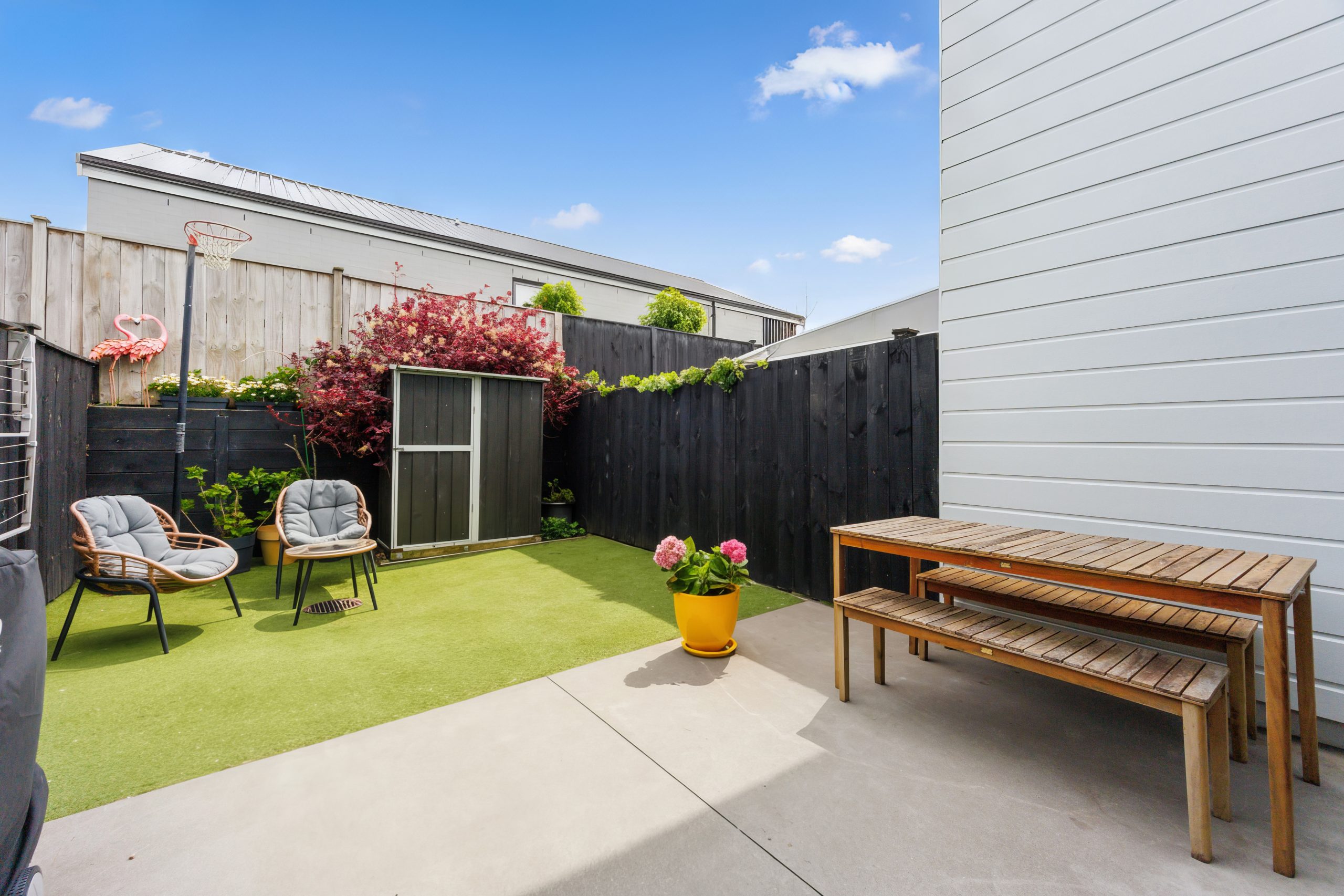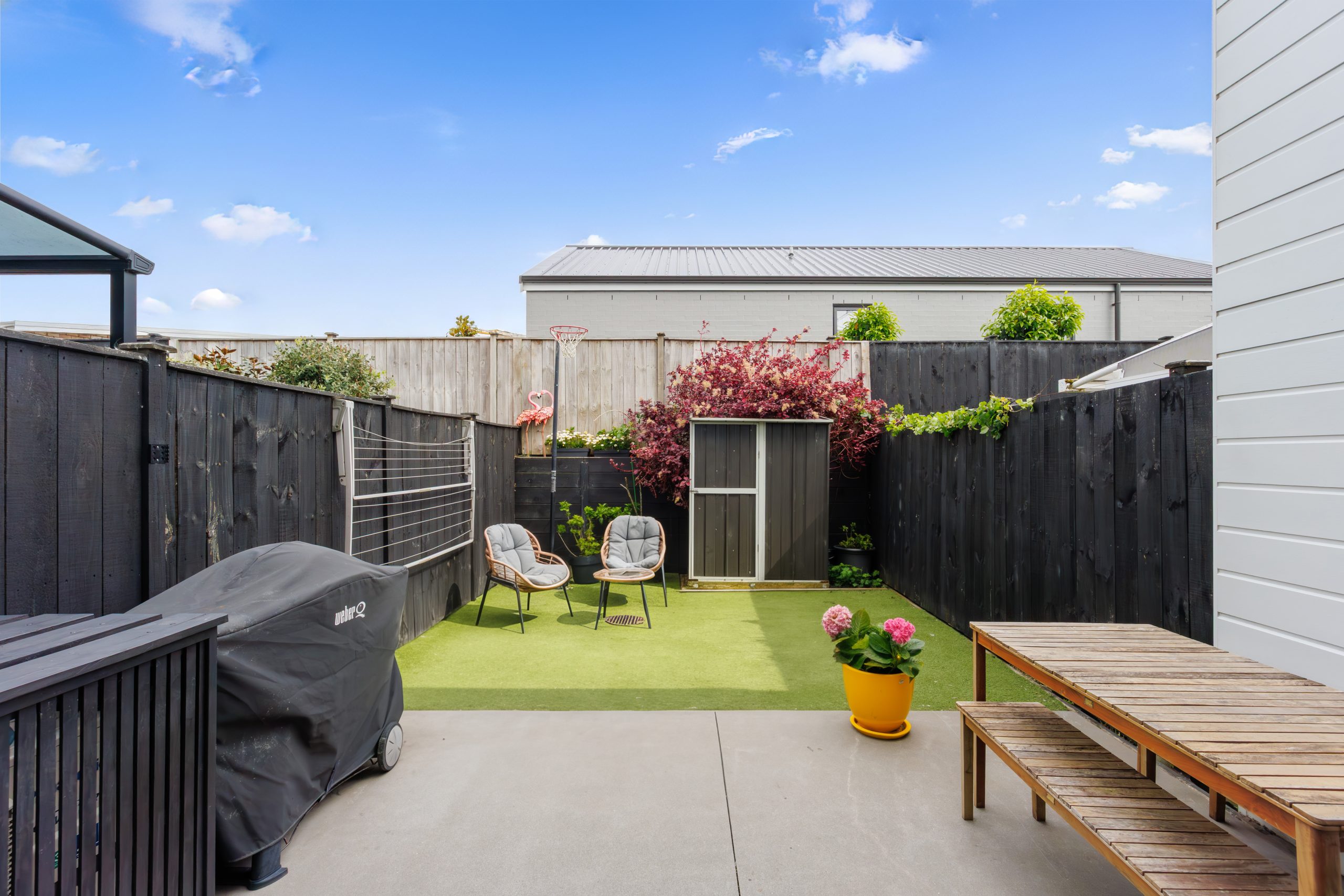 The fully fenced courtyard garden provides a secure space for children and pets to play and a peaceful spot to unwind and relax. Enjoy your morning coffee on the covered patio or host summer barbecues in this charming outdoor area.